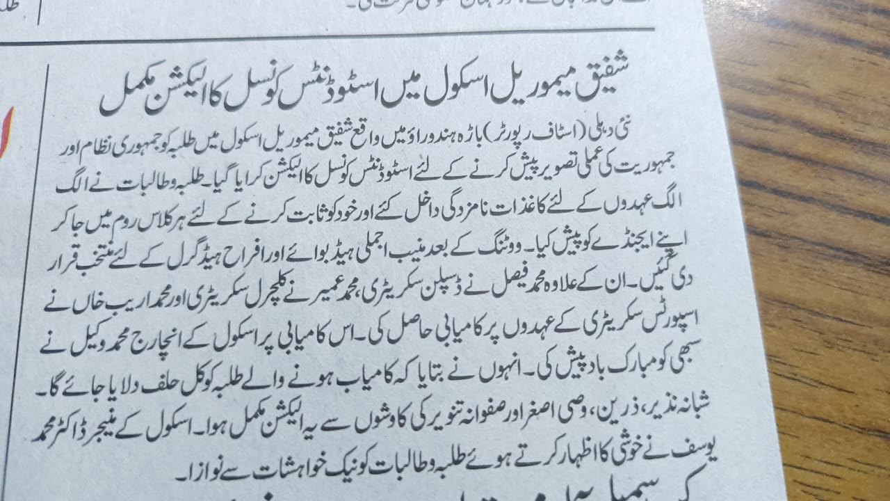 Shafiq Memorial Shines again in Inter-school Debate competition held on 29th Oct 2025.Our school team made us proud again by winning the esteemed Ghaziuddin trophy for seven consecutive years competing against the top schools. Our debaters Impressed everyone with their sharp arguments and confident speaking, on the topic of Artificial intelligence .Our school not only earned the trophy but the contestants from our school, Abdul Subhan S/o Kafel Ahmed and Safwaan Quddus Sallem S/o Mohd Khurram Saleem won individual prizes also. The Mentorship goes to Mr. Noorul Islam our talented teacher, who polished the students .Congratulations to the team and their mentor for bringing glory to our school once again. The trophy is in the name of Ghaziuddin, who was founder of Anglo Arabic School in 1969. It was originally named as Madaria Ghaziuddin Khan. The trophy is dedicated in loving memory of his esteemed founder, whose vision legacy continues to inspire. At school the victory was celebrated by the Cash prizes awarded to the winner by honourable Mr. Vakil Ahmed (H.O.S ) of the school and MS- Naseem Nawab TG.T Persian ,celebrating their achievements and motivating them to reach even greater heights.