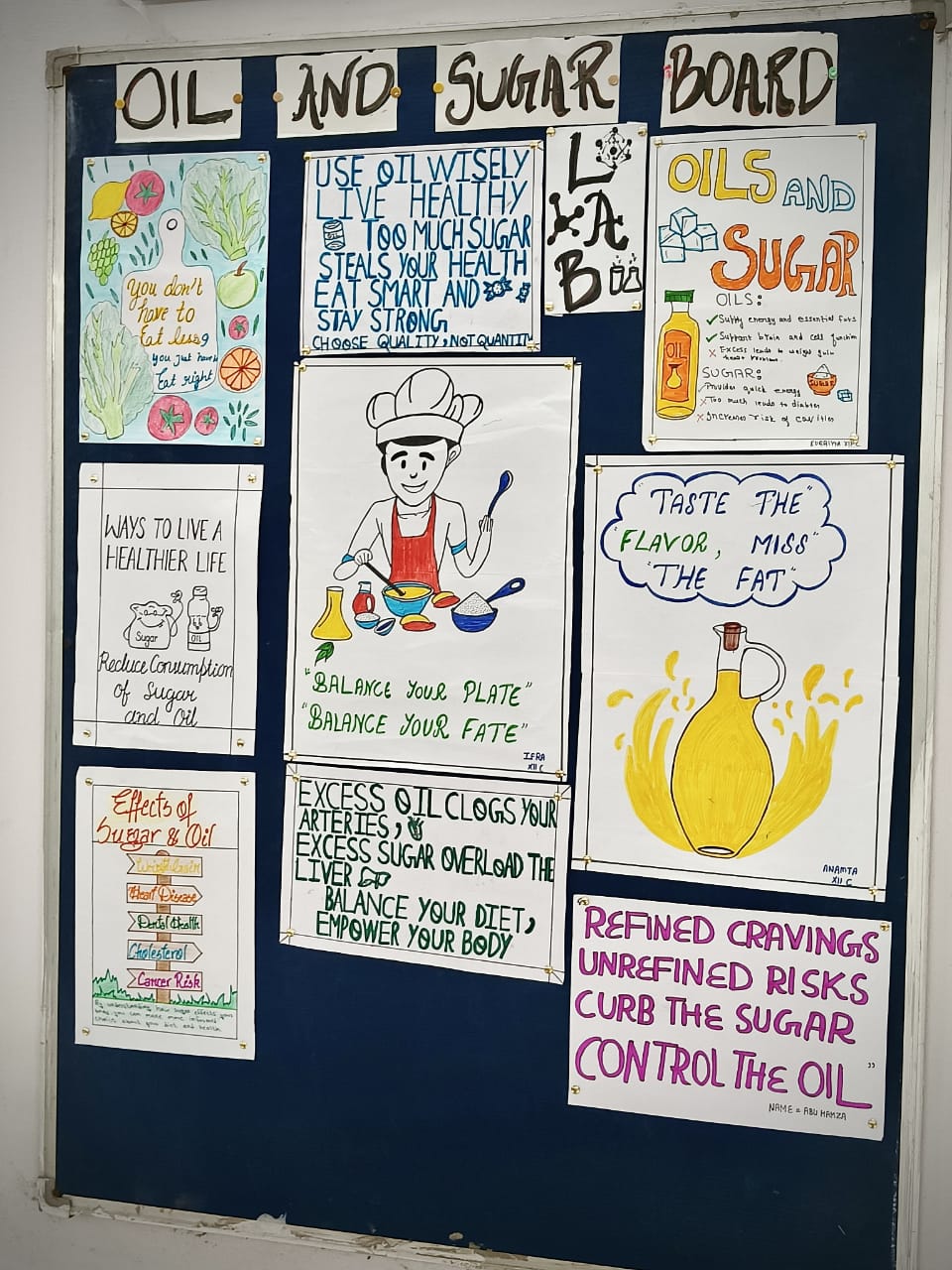 Various awareness activities, Related to subject -display of THE OIL AND SUGAR BOARD in school premises and promoting healthier lifestyles and combat obesity and Non-communicable diseases at school level.