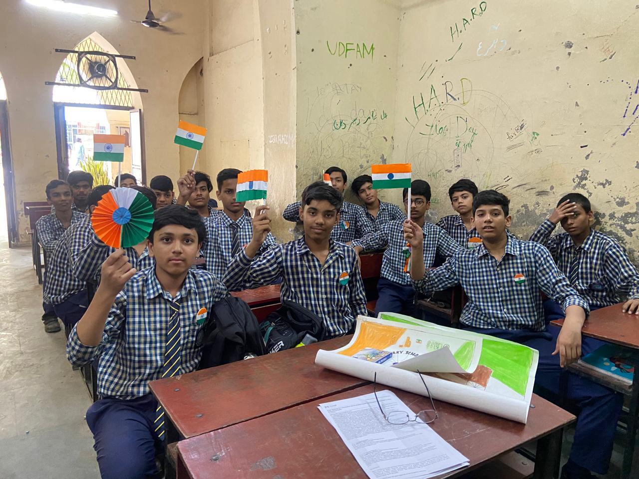 After the meeting, Prof. Mazhar Asif interacted with the students of the primary section. He also praised the creative work of students from Classes VI to XII on the theme “Har Ghar Tiranga”. He appreciated their hard work and acknowledged the efforts of teachers in guiding students to decorate the school beautifully on this theme.