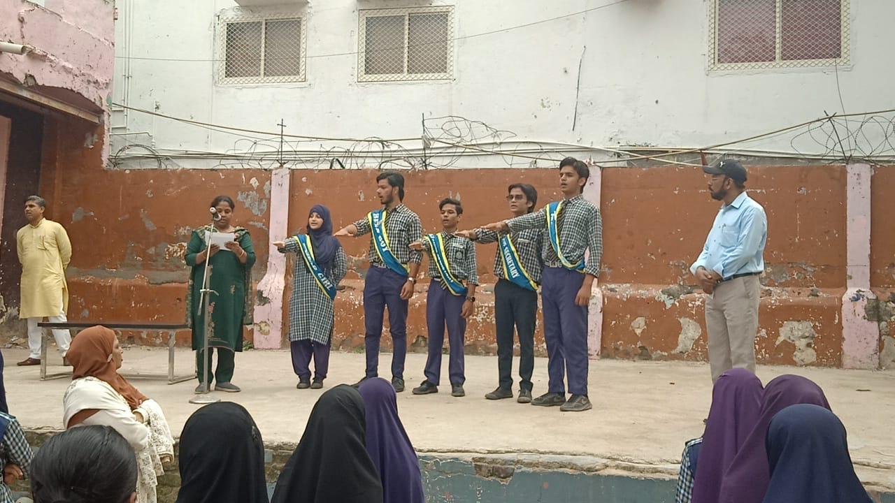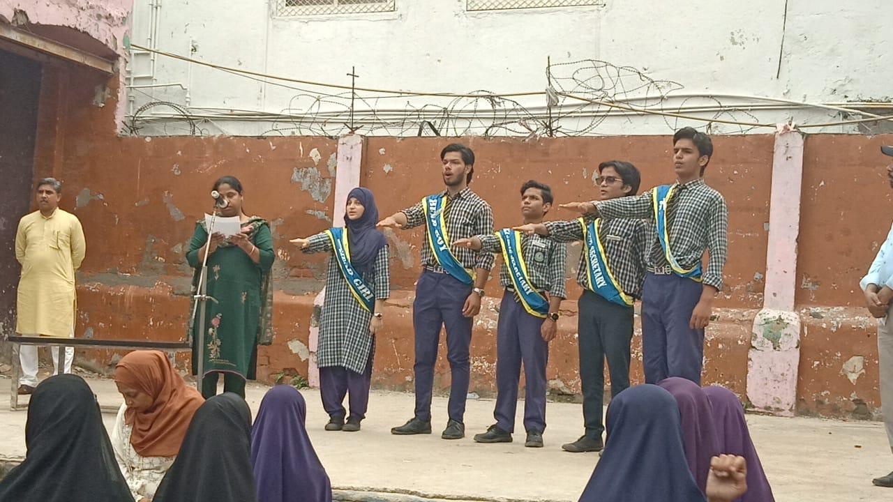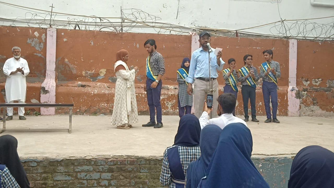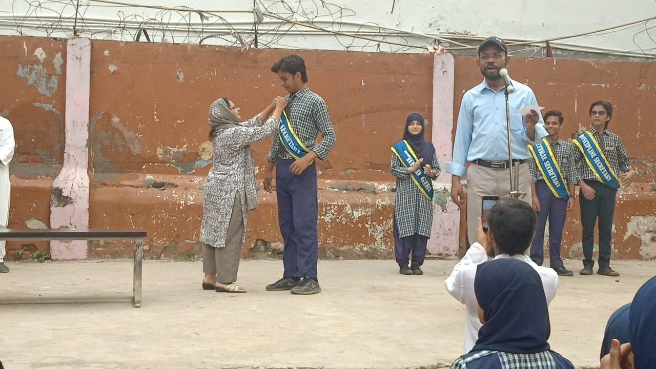 The Oath Ceremony of the School Youth Council was held on 23rd August 2025 in the school auditorium. The event began with a prayer and welcome address, followed by the official oath-taking by the newly elected council members. The senior teacher in the presence of the incharge of the school administered the oath, encouraging the students to lead with honesty, responsibility, and dedication. The Head Boy, Head Girl and other council members received their badges and sashes with pride. The ceremony concluded with a motivational speech by Mr. Vakil Ahmad, incharge of the school. It was a proud and inspiring moment for the entire school community.