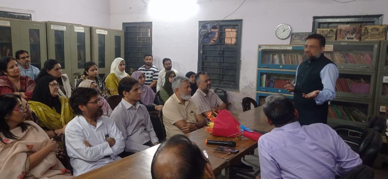 He was accompanied by Prof. Kehkashan Y. Daniyal (Secretary of the Managing Committee), Prof. Mohammad Yousuf (Manager of the School), and Mr. Waseem, Principal of Anglo Arabic Sr. Sec. School (Member of the Managing Committee).