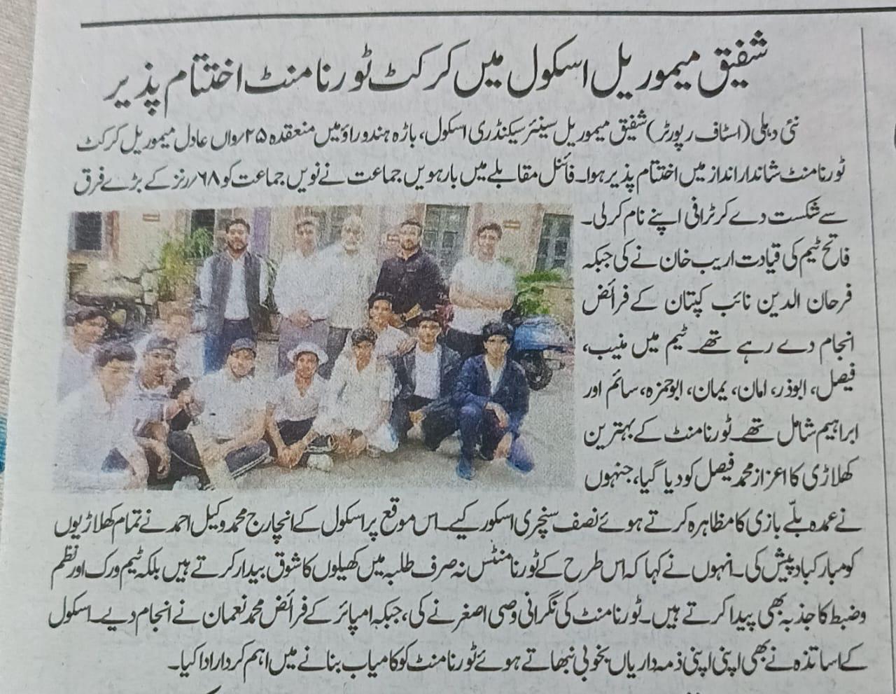 Sports Day and Adil Memorial Cricket Tournament (Shafiq Memorial Senior Secondary School)